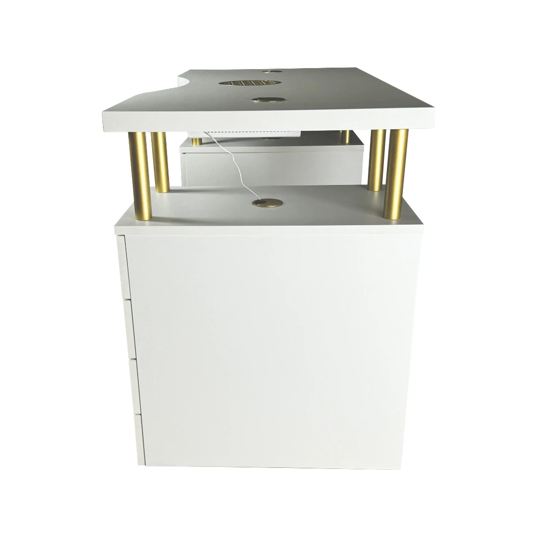 Biurko kosmetyczne COLORS GLAMOUR DIMOND jest przystosowane do pracy z pochłaniaczem pyłu COLORS DUST EXPERT 01. Pochłaniacz pyłu do paznokci COLORS DUST EXPERT 01 występuje jako dodatkowa opcja.