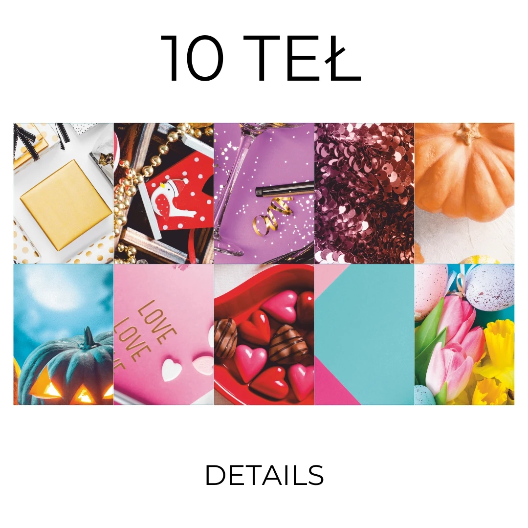Nasz zestaw teł do zdjęć został starannie skomponowany, aby zapewnić Ci różnorodność i stylową oprawę dla Twoich fotografii. W skład zestawu wchodzą tła z czterech serii: Glamour, Universal, Celebration, Details. Każda seria charakteryzuje się wyjątkowymi wzorami i motywami, które podkreślą piękno i elegancję Twoich prac.